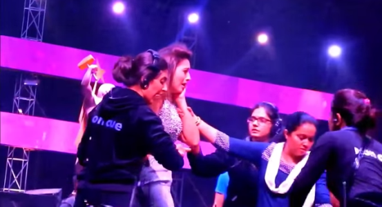 Malik was arrested for molestation and will appear in court today. Khan was taken off the set after the embarrassing assault to cool off but returned to the stage an hour later to continue her show.